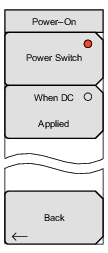 Press this submenu key to set the instrument to automatically restart when DC power is applied to the External Power connector (see Figure: Spectrum Master Connector Panel). Refer to External Power On.