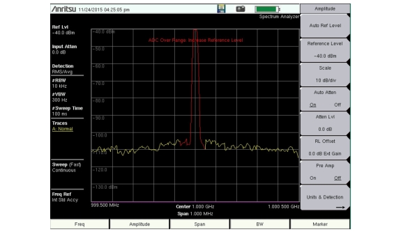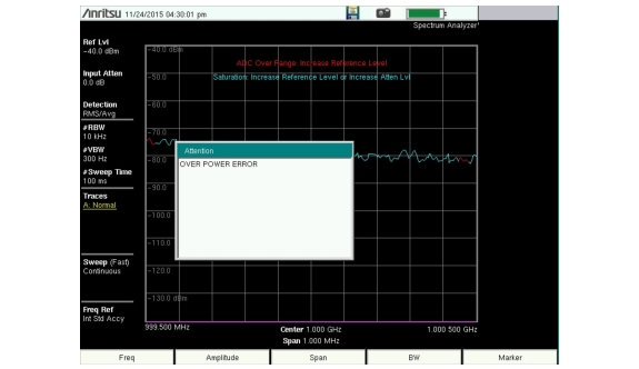 The Spectrum Analyzer has built-in features to indicate when a received signal is too high for the current setup.