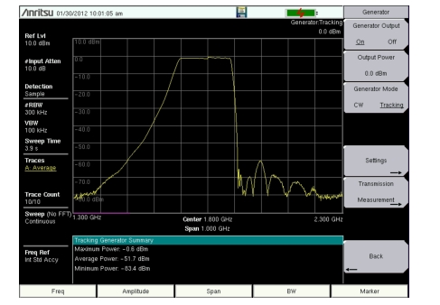 2. Set the Generator to Tracking Mode with an Output Power of 0.0 dBm. Refer to the previous Tracking Generator Overview section for additional information.