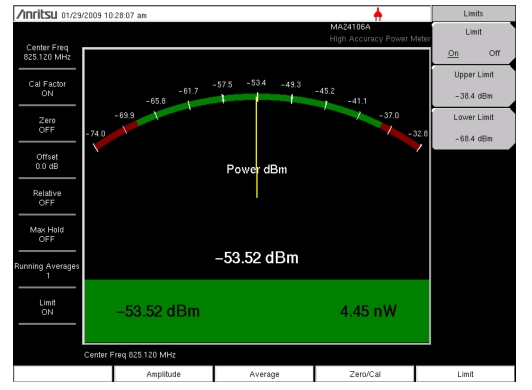 2. Press the Lower Limit submenu key. Enter the lower limit value in dBm or in Watts.