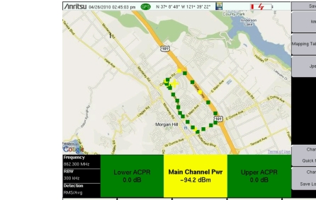 Coverage Mapping is possible both outdoors (GPS signal required) and indoors (no GPS signal). For more accurate position data for indoor measurements, use a stylus such as the Anritsu 2000-1691-R.