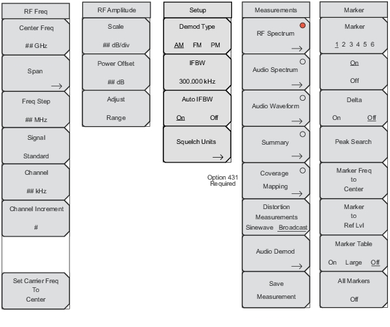 Measurements Menus with AM / FM / PM Analyzer (Option 509)