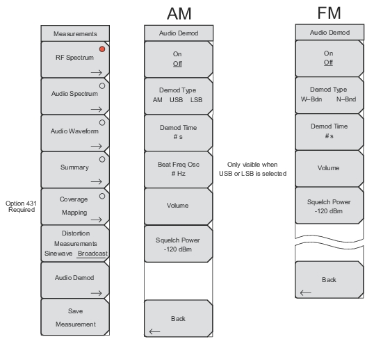 Audio Demod Menus with AM / FM / PM Analyzer (Option 509)