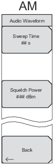 Press to set the sweep time for the AM audio waveform display. If you use the numeric keypad to enter a value, then the submenu keys change to Time in units of min, s, ms, or µs.