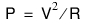 P = power in Watts , V = voltage level in Volts, and R = resistance in ohms