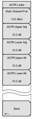 Brings up the ACPR Limits submenu. See Figure: ACPR Limits Submenu Keys.