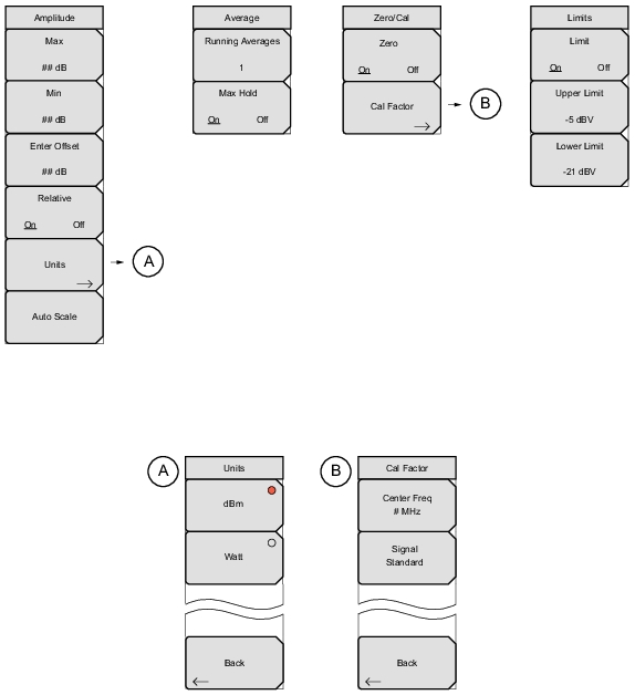 Figure: High Accuracy Power Meter Menus shows the map of the High Accuracy Power Meter menus. The following sections describe main menus and associated submenus. Menu maps show all possible submenu keys. Refer to individual menu descriptions for display circumstances.