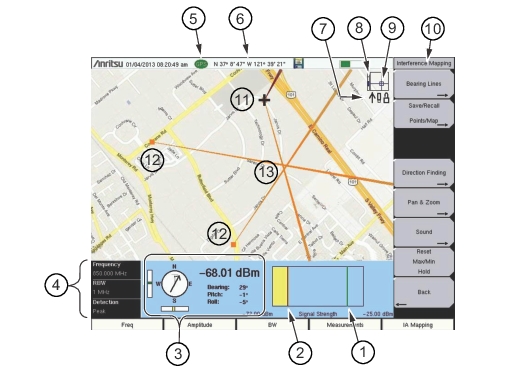 Spectrum Analyzer Measurement Guide : Interference Analyzer (Option 25) : Interference Mapping : Interference Mapping (MA2700A and Antenna)