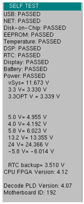 If any of the subtests shows FAILED, then check that the battery level is adequate for operation or that temperature is within acceptable limits. Reset to factory defaults with either Factory Defaults (Esc + On), or Master Reset (System + On).