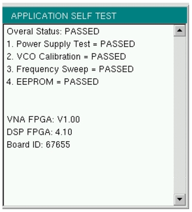 Application Self Test Results Window (Vector Network Analyzer mode)