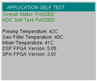 Application Self Test Results Window (Spectrum Analyzer mode)