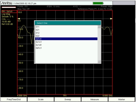 Differential S‑Parameter Selection List Box (no soft key menu)