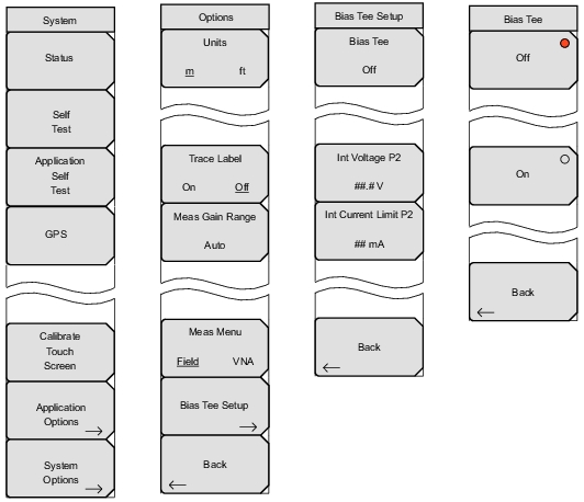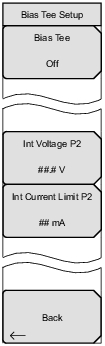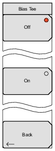 ![]() | Off Press this soft key to turn Off the Bias Tee function. On Press this soft key to turn ON the Bias Tee function. Back Press this soft key to return to the Bias Tee Setup Menu without changing the current Bias Tee setting. |