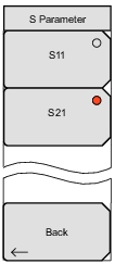 ![]() | For a visual depiction of S‑Parameter measurements, refer to VNA Fundamentals. S11 Press this soft key to set the measurement to S11 Forward Reflection (receive at Port 1, transmit from Port 1). S21 Press this soft key to set the measurement to S21 Forward Transmission (receive at Port 2, transmit from Port 1). Back Press this soft key to return to the Measure Menu. |