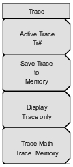 ![]() | Active Trace Press this soft key to open the “Active Trace Selector” List Box and choose a trace. Use the arrow keys, the rotary knob, or the number keypad to select a trace and then press the Enter key. Press the Esc key to close the list box without changing the active trace. Save Trace to Memory Press this soft key to save the current trace to memory. Display Press this soft key to open the Display Menu (Trace). Trace Math Press this soft key to open the Trace Math Menu. |
