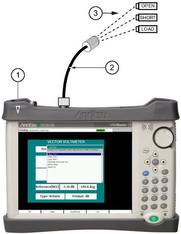 The Cal Port soft key is available only on the MS20xxC VNA Master. The MS20xxB VNA Master and the S412E LMR Master calibrate only on Port 1, so they do not use this soft key.