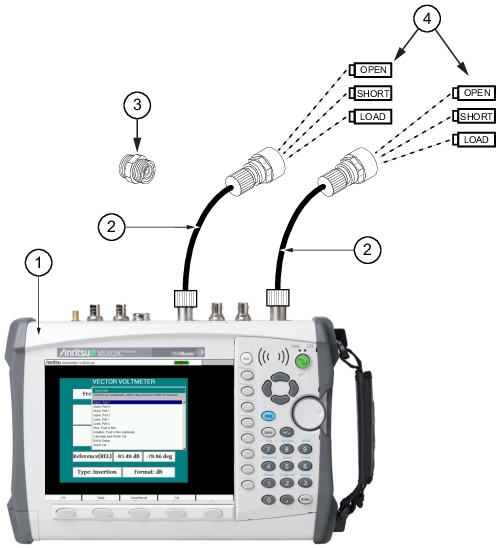 Figure: 2‑Port Calibration, using MS2028C shows an optional adapter for the Through connection. If you are using test port cables, and if you have sufficient calibration components, then using male OSL standards on one port and female OSL standards on the other port allows you to connect the cable ends together without the adapter. This becomes more important at higher frequencies.