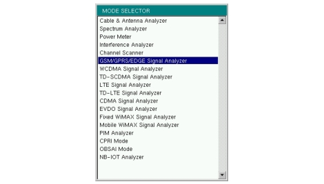To change the measurement mode, press Shift, then the Mode (9) button to open the Mode Selector list box. Highlight the desired measurement mode using the Up or Down arrow keys or the rotary knob and press Enter. The list of available applications depends on the options that are installed and activated on your instrument.