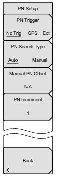 4. Press the PN Search Type submenu key to toggle between Auto or Manual. In Auto mode, the instrument automatically detects the strongest pilot, while in Manual mode it searches only for the specified PN.