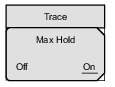 ![]() | Max Hold: Press this submenu key to toggle Max Hold On or Off. It applies to Spectrum view and EVM vs Sub Carrier view. This function allows the spectrum trace to hold its peak value from trace to trace. This helps in capturing a representative spectrum of a burst RF signal, such as WiMAX. All Max Hold operations show two traces. One trace is a max hold value, and the other is a live trace with the current measurement results. |