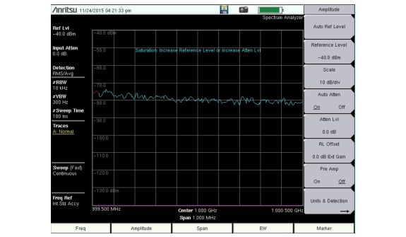 The Spectrum Analyzer has built-in features to indicate when a received signal is too high for the current setup.