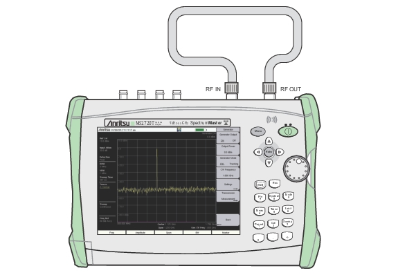 4. Set the spectrum analyzer frequency range using the Frequency (Freq) menu and submenus. Refer to the Spectrum Analyzer Measurement Guide (10580‑00349) for additional information.