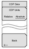 CDP Units: Press this submenu key to toggle between Relative units (in dB) or Absolute units in (dBm). Select Relative to show CDP power values in dB relative to Pilot and MAC Power, or Absolute to show power values in dBm.