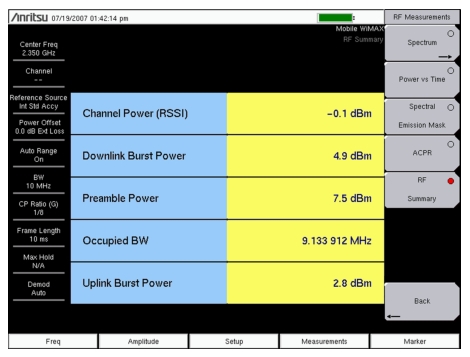 Figure: Mobile WiMAX RF Summary may differ from any image on your instrument.