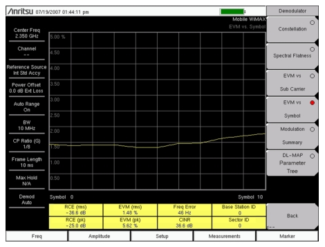 Figure: Mobile WiMAX Demodulator EVM versus Symbol Measurement may differ from any image on your instrument.