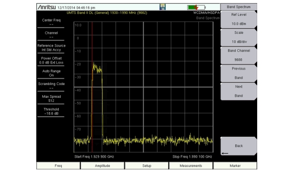Selecting Channel Spectrum after selecting a channel using the cursor will display the measurements for the selected signal.