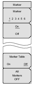 Press the Marker main menu key to open the Marker menu. The instrument is equipped with six markers. Any or all markers can be employed simultaneously.