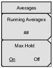 ![]() | Running Averages Press this submenu key to set the number of measurements to be averaged. Use the numeric keypad to enter a number from 1 to 100 or use the arrow keys or the rotary knob. Press Enter to set the number. Max Hold On Off Press this submenu key to toggle the Max Hold setting On or Off. When On, Max Hold sets the displayed measurement to show the maximum measured power. Note that changing any parameter resets this feature. |