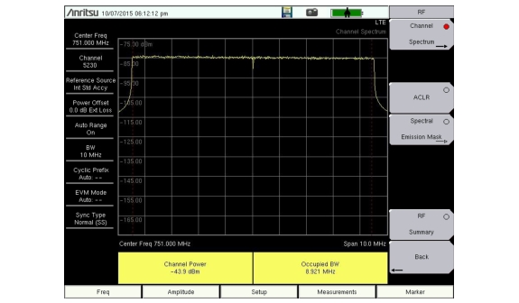 3. Press the Channel Spectrum submenu key to activate this RF measurement view (Figure: Channel Spectrum).