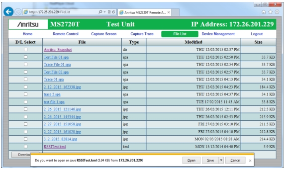 Web Remote Control Window - File List Tab