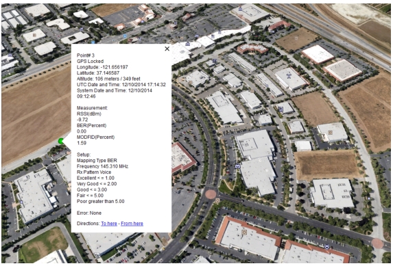 The saved .kml or .mtd file in either option will not have GPS data, but it will plot on a 666 x 420 grid with RSSI or ACPR data for each captured point. The upper left corner of the map area on the display is point 0,0; the lower right corner of the display is point 665,419.