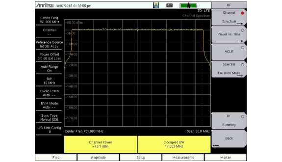3. Press the Channel Spectrum submenu key to activate this RF measurement view (Figure: Channel Spectrum).