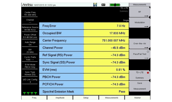 2. Press the TD‑LTE Summary submenu key to activate and display the TD-LTE measurements in table format.
