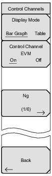 Control Channel EVM On Off: When On, the EVM column is included to display the EVM of each control channel. The EVM column is included for either Bar Graph or Table displays.