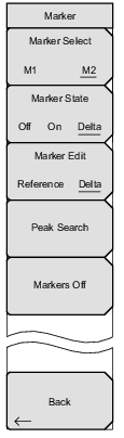 Selects the active marker M1 or M2. The underlined marker is active marker. Each press of the submenu key moves the underline to the other marker.