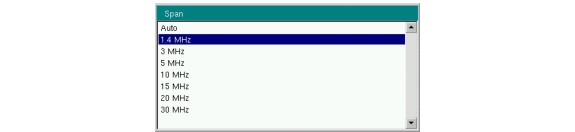 3. To select the frequency span, press the Span menu key and choose the desired bandwidth from the displayed list box, then press Enter. In NB‑IoT, the optimal span for spectrum view is usually 1.4 MHz.