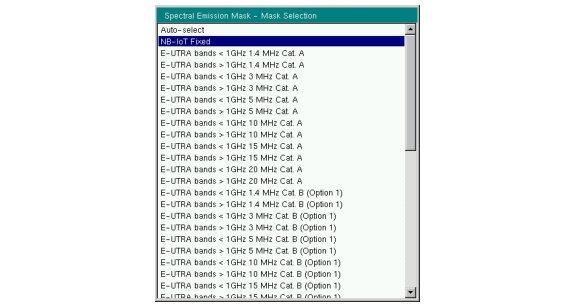 4. Press Select Mask and choose NB‑IoT Fixed from the displayed list.