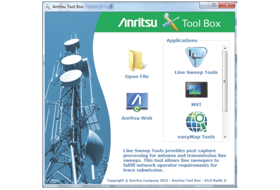Figure: Anritsu Tool Box Screen (may change with software version).