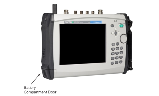 Use only Anritsu Company approved batteries, adapters, and chargers with this instrument. Anritsu recommends removing the battery for long‑term storage of the instrument.