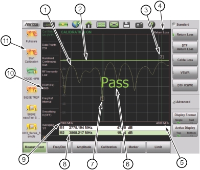 6. | Pass Message (Active trace is below the limit line in Return Loss measurement) |