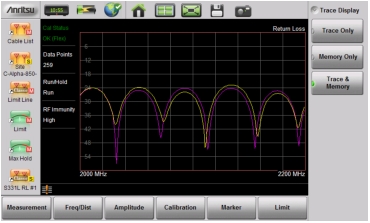 Note | The trace from memory can be displayed only if the measurement settings (except for Amplitude) have not changed since the trace was copied to memory. If one of the traces is cut off, then pressing Amplitude > Fullscale adjusts the reference level to display both traces. |