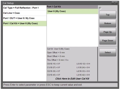 To ensure utmost measurement accuracy and consistency, please use the Anritsu calibration kits that are listed in the Calibration menu. These can be found in the accessories section of the S820E data sheet. Other Calibration kits that are not listed in the Calibration menu may be used provided you enter the correct required calibration coefficient information under one of the available custom User settings.