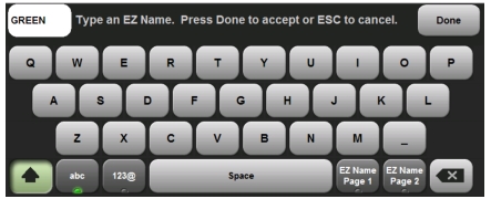 4. Press Done to apply the character string to the EZ Name key. The EZ Name keyboard now shows the key with its new name. In the example, one of the Color Code keys was renamed.
