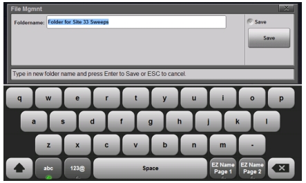 5. Enter the new folder name. Optionally, you can use the EZ Name keyboards to enter preset character strings. Refer to EZ Name Keyboards.