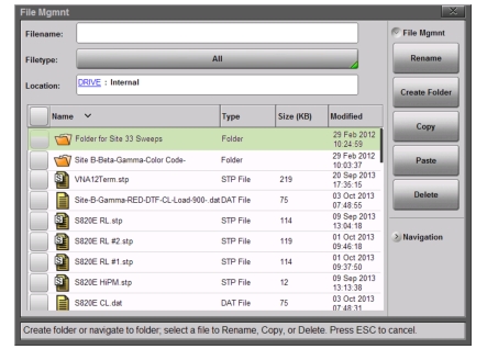 The Site Master S820E allows folders to be created in either internal memory or an external USB drive. This functionality is helpful in organizing traces by date, technician, carrier, and/or site location.