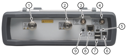 1. | Port 1, Type N, Female (Options 0708, 0714) or Ruggedized K, Male (Options 0720, 0730, 0740) 50 ohm impedance. Maximum input is +23 dBm at ±50 VDC. Torque to 12 lbf·in or 1.4 N·m (N connector) or to 8 lbf·in or 0.90 N·m (K connector). |